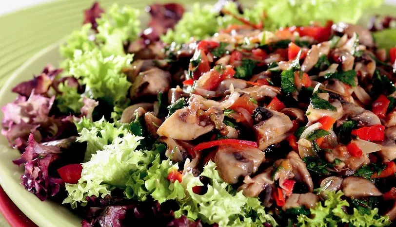 Kestane mantarlarını, zeytinyağını, doğradığınız soğanları ve kekiği sürekli karıştırarak 8-10 dakika soteleyin. Daha sonra tuzunu, biberini ayarlayın. Jülyen doğradığınız kırmızıbiberi, çekirdeklerini çıkarıp doğradığınız domatesi, sirke ve limon suyunu da ekleyerek 3 dakika pişirin. Maydanozu serpip ocaktan alarak ılınmaya bırakın. Daha sonra marul yaprağında servis yapın.
