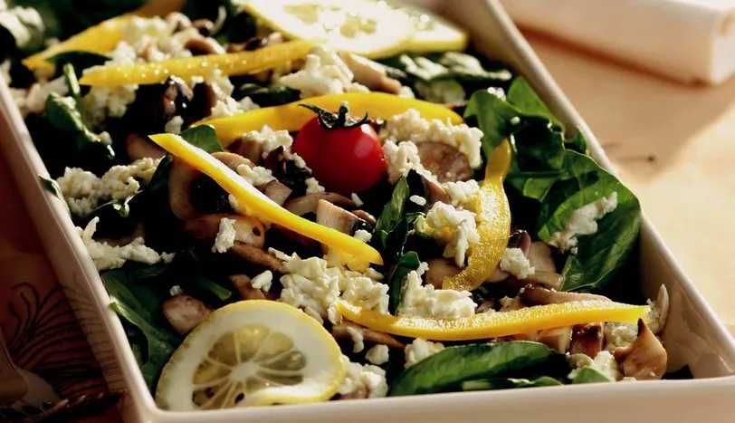Ispanak yapraklarını yıkayıp, kurulayın ve servis tabağına alın. Mantarları zeytinyağında 1-2 dakika soteleyin ve ıspanakların üzerine yayın. Diğer tarafta sos için zeytinyağı, sarmısak, elma sirkesi, tuz ve karabiberi karıştırarak, salatanın üzerine gezdirin. En son rendelenmiş light beyaz peyniri serpiştirin ve servis yapın.
