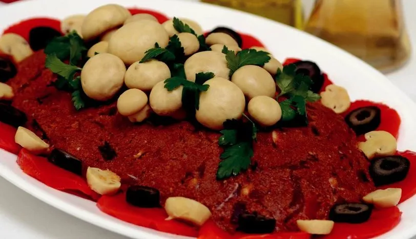 Tost ekmeklerini robottan geçirin ve derin bir kaseye alın. İçine ince doğranmış pastırma, susam, domates ve biber salçası, pul biber, sucuk baharatı, toz şeker, kimyon, sarımsak, ceviz, zeytinyağı ve tuz ilave edin. Bütün malzemeyi iyice karıştırın. Hazırladığınız karışımı servis tabağına alın. Üzerini mantar ve cevizle süsleyip servis yapın.AŞÇININ NOTUSalatayı hemen tüketecekseniz mantarı içine de katabilirsiniz. Arzuya göre salataya limon sıkabilirsiniz.