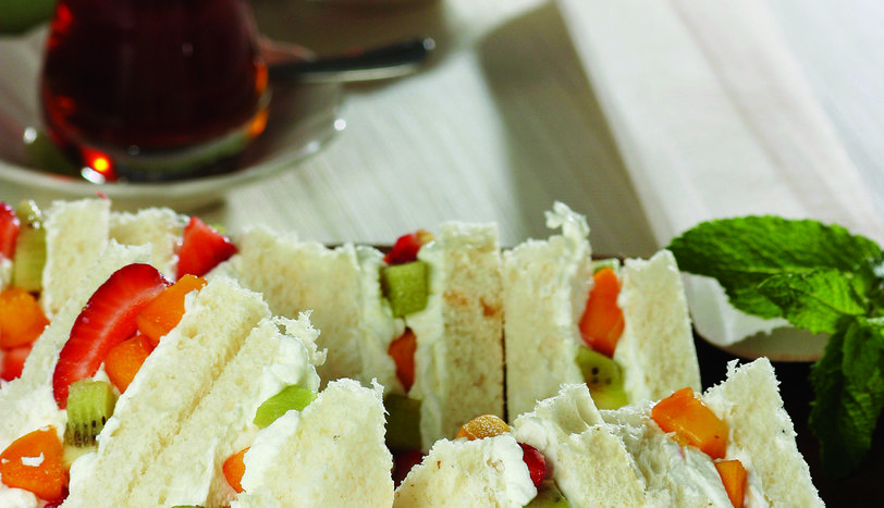 Tüm meyveleri küçük parçalar halinde kesip krem şantinin üzerine yerleştirin ve diğer ekmek dilimlerini de üzerlerine kapatın. Buzdolabında 15 dakika beklettikten sonra servis yapın.