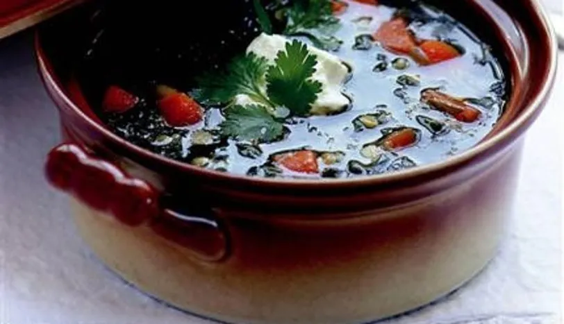 LEPEYİ bir gece önceden ıslatın. Sıvıyağı tencereye alıp, yemeklik doğranmış soğanı sıvıyağda soteleyin. Rengi döndüğünde lepe ve küp doğranmış havucu ilave edin. Suyunu ayarlayıp, yaklaşıp 30 dakika pişirin. Tüm yeşillikleri kıyıp, lepe ve havuç piştikten sonra tencereye ekleyin. Pirinci ilave edip, tuzunu ayarlayın. Üzerini kıyılmış reyhan ve kişnişle süsleyip, sıcak olarak servis yapın.