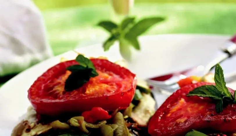 SEBZE soteyi hazırlamak için, mantarı temizleyip ince kıyın. Kızdırdığınız zeytinyağında mantarları kavurun. Üzerine piyazlık doğranmış soğan, rendelenmiş havuç, yarımay doğranmış kabak, sarmısak ve ince kıyılmış biberleri ilave edin. 10 dakika soteleyin. Tuz, karabiber ve pulbiber ilave edip kenara alın. Beğendi için, 1 adet bostan patlıcanını ocakta ya da fırında közleyin. Kabuklarını soyup çekirdekli kısımlarını çıkarın. İnce kıyıp kenara alın. Tereyağını kızdırıp, unu rengi dönene kadar kavurun. Üzerine patlıcanı ekleyip ezin. Birkaç dakika sonra sütü ilave edin. Tuz ve karabiberi serpin. Koyulaşana kadar pişirip ocaktan alın. Kalan bostan patlıcanını uzunlamasına bir parmak kalınlığında dilimleyin. Acısını almak için tuzlu suda 10 dakika bekletin. Sıvıyağı bir tavaya alıp, kuruladığınız patlıcanı arkalı önlü kızartarak kenara alın. Aynı tavada halka doğranmış domatesi de kızartın. Patlıcan dilimlerini servis tabağına alın. Üzerine beğendiyi paylaştırın. Sebze soteyi ekleyin. Domates dilimleri ile süsleyerek servis yapın.