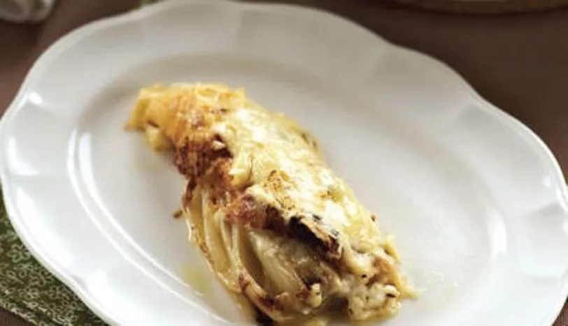 BEYAZ hindibaları temizleyip yıkadıktan sonra burukluğunu almak için kök kısımlarından 2 cm kesin. Daha sonra limon suyu eklenmiş kaynar suya atıp, 10 dakika haşlayın. Sudan çıkarıp baş aşağı bırakın ve içlerinde kalan suyu süzdürün. Soğuduktan sonra dikine ortadan ikiye bölüp, bir fırın tepsisine yerleştirin. Beşamel için ayrı bir tavaya aldığınız tereyağını eritip, unu ekleyin ve rengi dönene dek kavurun. Üzerine süt ilave edip, kıvam alana dek pişirin. Muskat, tuz ve karabiber ekleyip, ocaktan alın. Sotelediğiniz beyaz hindibaları bir fırın kabına yerleştirin. Üzerine beşamel sosu yayın. Rendelenmiş gravyer peyniri serpin. Önceden ısıtılmış 180 derece fırında üzeri kızarana dek pişirin.