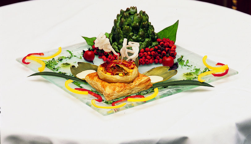 ENGİNARIN üst kısmından 1/3'ünü kesin. Yarım limonu bastırarak sürün ve enginarın sap kısmını dipten kesin. Dipteki kalın yaprakları koparın. Diğer yaprakların uçlarını makasla alın ve limon sürün. Tencerede tuz ilave edilmiş suyu kaynatın. Enginarları tencereye dizin. Üzerini alüminyum folyoyla örtüp 20 dakika kaynatın ve süzün. Diğer yandan içini hazırlayın. Bir tavaya yerfıstığı yağı, sarmısak ve soğan koyup karıştırın. ‹nce doğranmış mantarları, küp doğranmış ayvaları ekleyip soteleyin. Ekmek içlerini blendırda çekin. Adaçayı, mısır taneleri ve ekmekleri ilave edip karıştırın. Bu harcı enginarlara doldurun. Üzerine parmesan peyniri serpin ve tek tek alüminyum folyoya sarın. Teflon tepsiye dizip fırında yarım saat pişirin. Bu arada sosu hazırlayın. Tavaya zeytinyağını, doğranmış kırmızı biberi koyup soteleyin. ‹ki dakika sonra da doğranmış domates, soğan, sarmısak ve fesleğeni ekleyin. 5 dakika sonra ateşten alın. Taze soğan, ballı sirke, tuz ve karabiberi ekleyip, blendırdan geçirerek püre haline getirin. Soğumaya bırakın. Enginarların dış yapraklarını ayırıp, uçlarına birer kaşık sos koyup, bütün enginarların etrafına yerleştirin. Karpuz reçeli ile servis yapın.