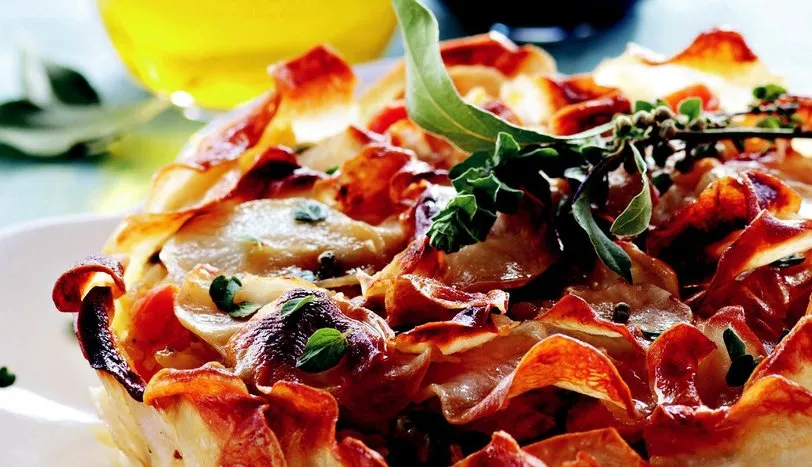 DÖRT adet patatesi haşlayıp, kabuklarını soyun. Rendeleyip geniş bir kaba alın. Üzerine kefir, rendelenmiş havuç, bezelye, toz kırmızıbiber, muskat, 1 çorba kaşığı zeytinyağı, karabiber ve tuz ekleyip karıştırın. Kalan 2 adet patatesi halka şeklinde incecik dilimleyin. Fırına dayanıklı orta boy bir kabı yağlayın. Kabıntabanına ve kenarlarına dilimlenmiş patateslerin bir kısmını yerleştirin. Ortasına kefirli karışımı doldurun. Üzerini kalan patates dilimleri ile kaplayın. Ayrı bir yerde zeytinyağı ile yumurta sarısını iyice çırpın. Fırça yardımıyla patateslerin üzerine sürün. Önceden ısıtılmış 170 derece fırında kızarana dek pişirin.Servis tabağına alıp, dilediğiniz şekilde süsleyerek servis yapın.