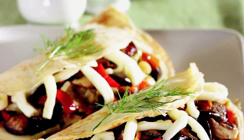 Krebi hazırlamak için, tüm krep malzemesini, akışkan kıvamlı bir hamur elde edene kadar mikserde karıştırın. Karışımdan bir kepçe alarak yapışmaz yüzeyli tavada önlü arkalı kızartın. Tüm karışım bitene kadar aynı işlemi tekrarlayın. Sebze kavurması için, tüm sebzeleri ince doğrayıp tuz ve karabiberle karıştırın. Zeytinyağında soteleyip, ocağın altını kapatın. Dil peynirini tel tel ayırıp sebze kavurması ile karıştırın. Sebze kavurmasını kreplerin içine pay edip servis yapın.