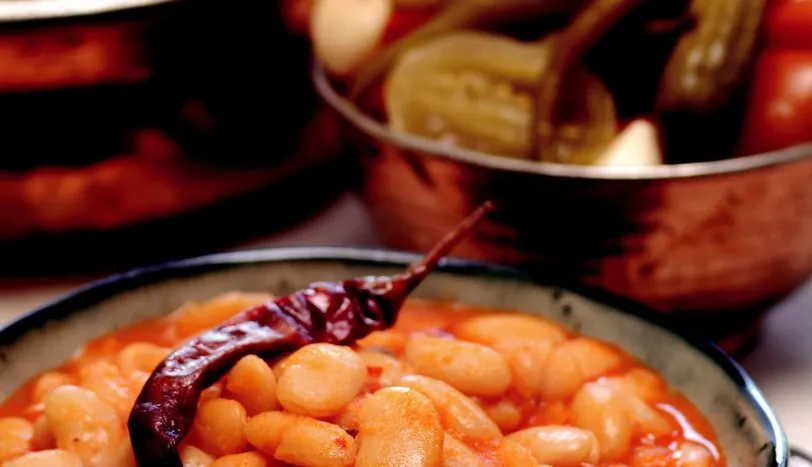 Fasulyeyi akşamdan ıslatın. Ertesi gün süzüp bir tencereye aktarın ve yarı yarıya yumuşayana kadar haşlayın. Diğer taraftan tereyağını bir tencerede eritip, yemeklik doğranmış soğanı rengi dönene kadar kavurun. Salçaları ekleyip, birkaç dakika daha kavurun. Soğanlı harcı fasulyeye ekleyin. Üzerini iki parmak geçecek kadar sıcak su ve tuz ilave edin. Fasulye tamamen yumuşayana kadar (suyu azalırsa su ekleyerek) pişirip, ocaktan alın.