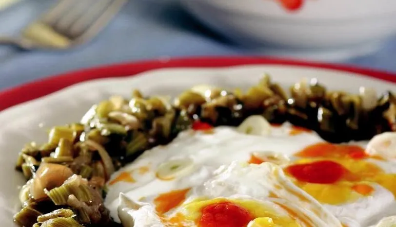 PAZI saplarını ve soğanı ince kıyın. Zeytinyağında hafifçe soteleyin. Tuz ve karabiberi ilave ederek servis tabağına alın. Çılbır için, kaynayan suya yumurtaları kırın. Yumurtaların ak ve sarısı piştiğinde delikli kepçe yardımıyla dağıtmadan alın. Servis tabağındaki pazı yatağının üzerine yerleştirin. Sarmısakları kıyarak yoğurtla karıştırın. Biber salçasını tereyağıyla kavurun. Pazılı çılbırın üzerine sarmısaklı yoğurdu, daha sonra tereyağlı karışımı gezdirerek servis yapın.