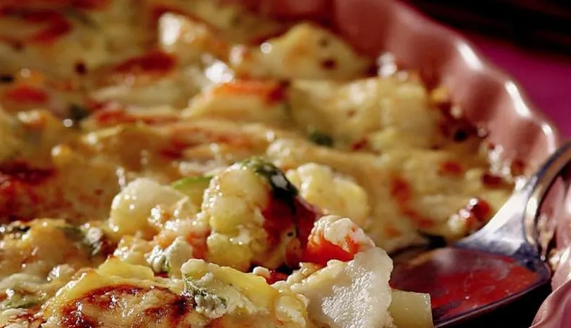 KARNABAHARI çiçeklerine ayırıp, havuç ve patatesle birlikte tuzlu suda 15 dakika haşlayın. Suyunu süzün ve havucu verev, patatesleri yuvarlak şekilde doğrayın. Zeytinyağı ile yağlanmış bir fırın kabının içine karnahabar, havuç, patates ve irice doğranmış taze soğanınm yeşil kısımlarını yerleştirin. Diğer tarafta yumurta sarısı, süt ve unu iyice çırpın. Hazırladığınız beşabeşamel sosu sebzelerin üzerine gezdirin. En üste de rendelenmiş kaşar peynirini serpin. Önceden ısıtılmış 175 derece fırında 15 dakika pişirin