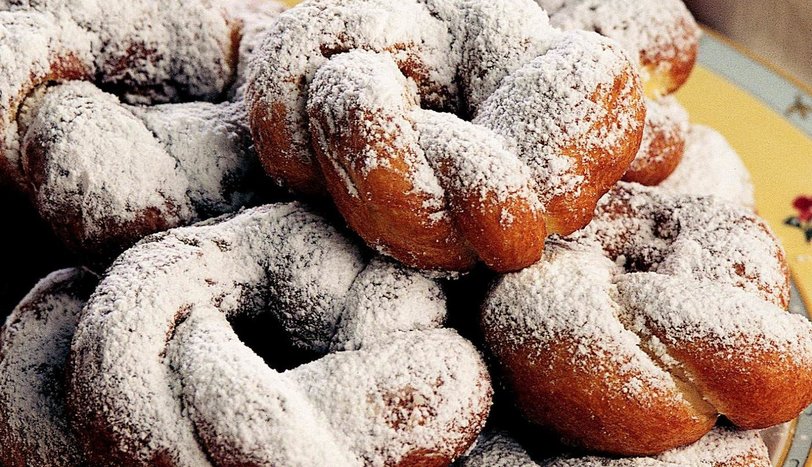 Elinizle çubuk şekli verin. Hamurun iki ucunu birleştirin ve düğüm atın. Daha sonra uçlarını bir alttan bir üstten geçirip, örgülü bilezik şekli verin. Bütün bezelere aynı işlemi uygulayın. Fazla kızgın olmayan ayçiçek yağında kızartın. Üzerine pudra şekeri serpip servis yapın.