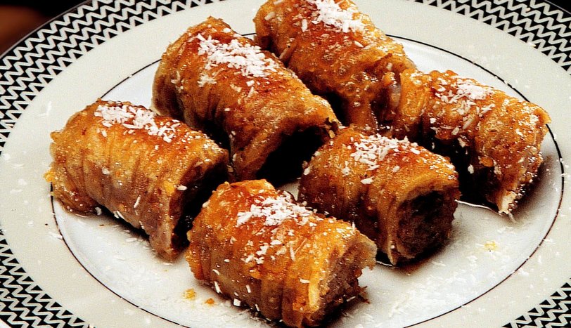 Margarin, toz şeker, ayçiçek yağı, yumurta ve aldığı kadar unu karıştırın. İyice yoğurun. Hamurdan iri bezeler koparıp, incecik açın. Çekilmiş ceviz içini nişasta ile karıştırın. Yufkaların üzerine serpin. Her bir yufkayı iki tarafından oklava ile sarın. Dilim dilim kesip, yağlanmış tepsiye dizin. Üzeri için yarım paket margarini eritip, ayçiçek yağı ile kızdırın ve tatlıların üzerine gezdirin. Orta ısılı fırında pişirin. Bu arada şeker ve suyu kaynatıp şerbeti hazırlayın. Limon suyunu ekleyip ılıtın. Sıcak tatlının üzerine ılık şerbeti gezdirip servis yapın.