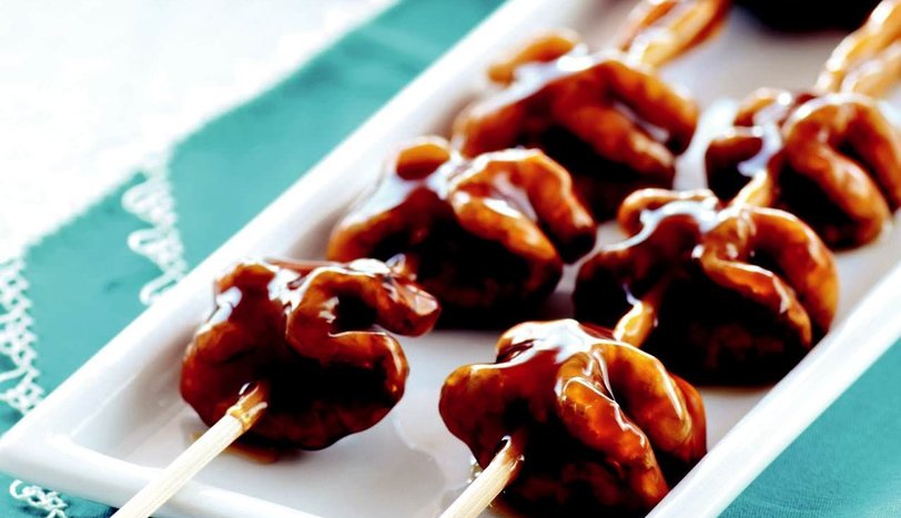Cevizi bir gece önceden suda dinlendirin. Ertesi gün suyunu süzüp, çöp şişlere geçirin. Üzüm pekmezi, su, toz şeker ve tereyağını tencereye alın. Kaynayana dek karıştırarak pişirin. Ayrı bir yerde nişastayı az miktarda su ile açın. Pekmezli karışıma damla damla ilave edip karıştırın. Biraz koyulaşınca çöp şişleri pekmezli karışıma batırıp çıkarın. 10-15 dakika dinlendirdikten sonra servis yapın.