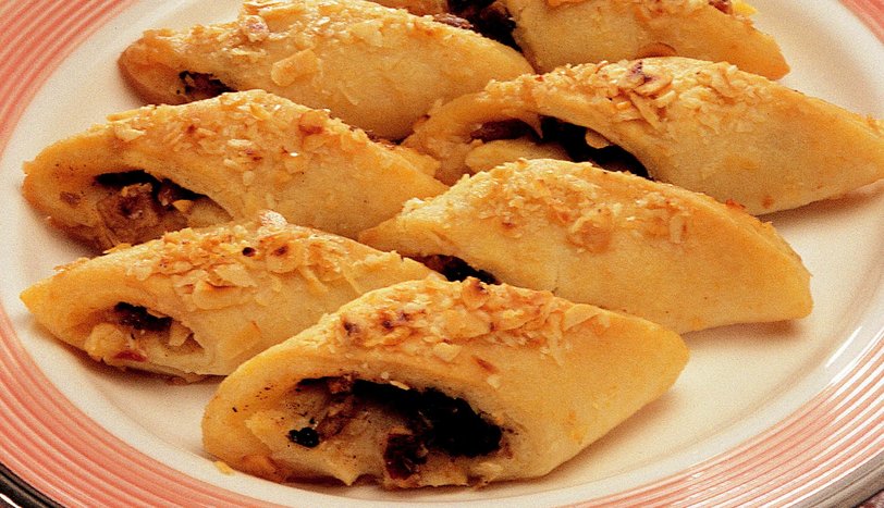 Bu karışımı, hamurların ortalarına yayın ve rulo yapın. Kenarlarını düzeltip, verev olarak 2 parmak kalınlığında kesin. Yağlanmış tepsiye dizin. Üzerlerine fındık serpin. Önceden ısıtılmış 170 derece fırında pembeleşene dek pişirin. Pişen hamurları fırından alın ve hemen soğutulmuş şerbeti üzerine gezdirin. Tepsiyi tekrar fırına koyup, fırının fişini çekin. Tatlıyı ılık fırında demlenmeye bırakın. Soğuyunca servis yapın.