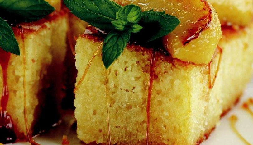 Önceden ısıtılmış 200 derece fırında üzeri kızarana kadar pişirin. Fırından çıkar çıkmaz soğuk şerbeti üzerine gezdirin. Revani şerbeti tamamen çekince dilimleyin. Elma karameli için, elmanın kabuklarını soyup dilimleyin. Bir tavaya alıp üzerine toz şeker ve suyu ilave edin. Kısık ateşte 10 dakika pişirin. Revaniyi servis tabağına alın. Tatlının üzerine elma dilimleri yerleştirin ve karameli gezdirin. Nane yaprakları ile süsleyerek servis yapın.