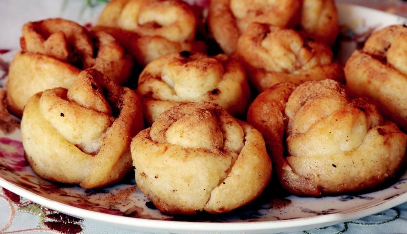 Ortasına ceviz, rendelenmiş portakal kabuğu ve tarçın karışımından koyun. Elinizle düzelterek hamura şekil verin ve ikiye kesin. Tekrar elinizle hamurun üzerine bastırın. Böylece iki gül elde edeceksiniz. Diğer hamurları da bu şekilde hazırlayın. Yağlanmış tepsiye dizin. 180 derece fırında üzerileri kızarıncaya kadar pişirin. Daha önce hazırladığınız soğuk şerbeti tatlıların üzerine dökün.