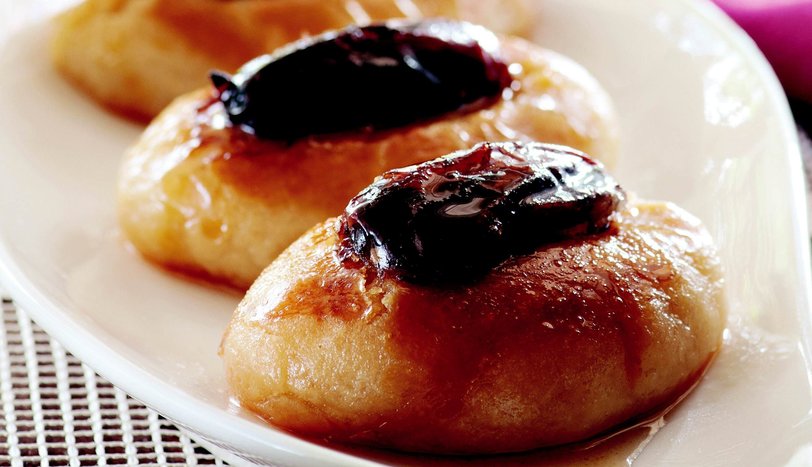 Hamurdan ceviz büyüklüğünde parçalar koparın ve oval şekil verip, yağlanmış fırın tepsisine yerleştirin. Üzerine yumurta sarısı sürün ve ortasına hurma koyun. Diğer hamur parçalarını da aynı şekilde hazırlayın.