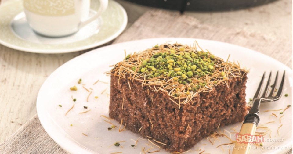 Sıcak kekin üzerine soğuk şerbet gezdirin. İyice çektikten sonra üzerini kavrulmuş kadayıf ve toz antep fıstığı ile süsleyerek servis yapın.