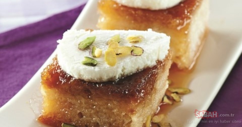 Pişirme sırasında tepsinin yanlarında biriken şerbeti ara ara tatlının üzerine gezdirin. Ocaktan alıp soğumaya bırakın. Dilimleyip üzerlerine kaymak yerleştirin. File Antep fıstığı serpip servis yapın.