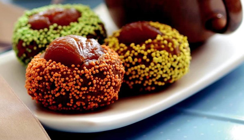 Daha sonra tencereyi ocağa oturtup, kısık ateşte 15 dakika pişirin. Vanilya ekleyip, hafifçe karıştırın. Kestaneleri şerbetten alıp, düz bir tabağa yerleştirin ve soğumaya bırakın. Ayrı bir yerde kestane püresi, galeta unu, pudra şekeri, krema ve damla çikolatayı kıvamlı bir hal alana dek yoğurun. Küçük mandalina ebadında parçalar koparıp, elinizde yuvarlayın. Baş parmağınızla ortasını açıp, kestane şekerlerini içlerine yerleştirin.