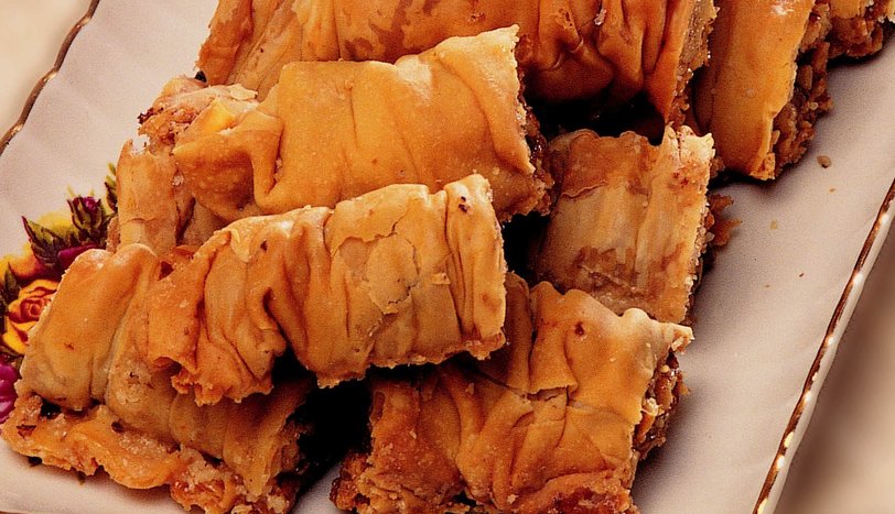 Yumurta, süt, karbonat, limon suyu, yarım paket eritilmiş tereyağı, tuz ve unu yoğurarak yumuşak bir hamur elde edin. 15-20 dakika dinlendirin ve 12 eşit parçaya bölün. Hamurları tek tek tabak büyüklüğünde açıp aralarına nişasta serpin. 3 adet hamuru üst üste yerleştirip merdane yardımıyla tepsi büyüklüğünde açın.
