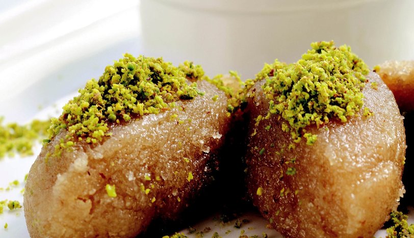 Servis yapacağınız zaman levzineyi bir çorba kaşığı yardımıyla şekillendirip tabaklara alın. Üzerine toz antep fıstığı gezdirin. Muhallebiyi küçük parçalar halinde kesin ve helatiyeninin üzerine ekleyin. Levzine ile birlikte servis yapın.