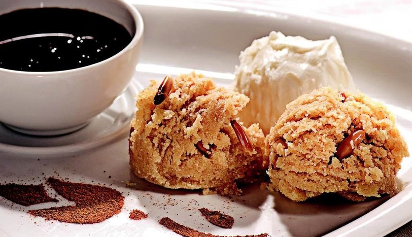 Diğer taraftan tereyağını bir tencereye alıp eritin. Üzerine dolmalık fıstık ve irmiği ekleyip, irmik renk değiştirene kadar sürekli karıştırarak kavurun. İrmik koyulaşınca, bir taraftan ılınan şerbeti üzerine ekleyip, bir taraftan da karıştırmaya devam edin. İrmik şerbeti tamamen çekince ocağı kapatıp 10 dakika dinlendirin. Daha sonra küçük bir kaseyi suyla ıslatıp içine irmik helvası koyun. Ters çevirerek servis tabaklarına çıkarın. Üzerine pekmez gezdirip, tarçın serpin. Vanilyalı dondurma ile birlikte servis yapın.