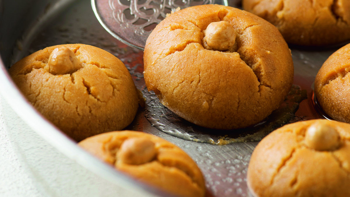 Hamurdan ceviz büyüklüğünde parçalar koparıp yuvarlayın. Üzerlerine hafifçe bastırıp fırın tepsisine aralıklı olarak dizin. Tam ortalarına fındık yerleştirin. Önceden ısıtılmış 180 derece fırında üzerleri kızarana kadar pişirin.
