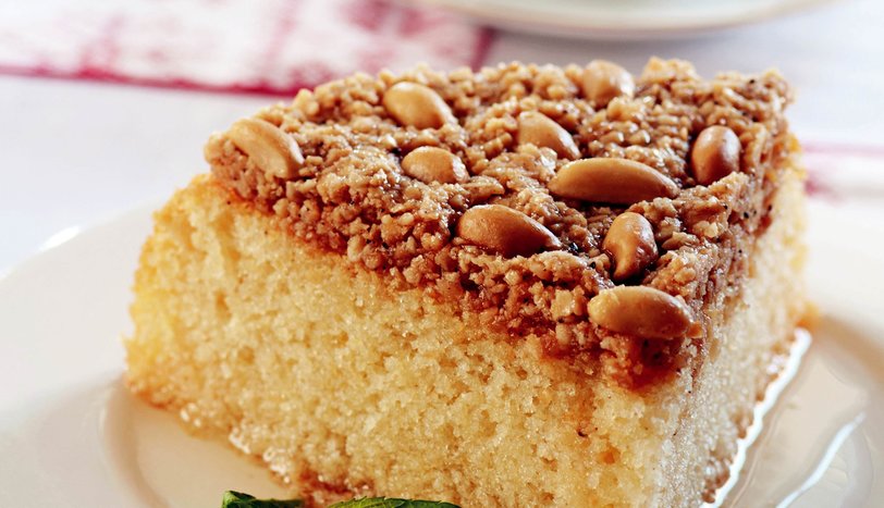Yağlı kağıdın da üzerini yağlayın ve hazırladığınız karışımı dökün. Üzerine kalan 1 yemek kaşığı yer fıstığını aralıklarla yerleştirin. Önceden ısıtılmış 180 derece fırında kızarana kadar pişirin. Soğuduktan sonra yağlı kağıdı çıkarıp, revaninin üzerine yerleştirin.
