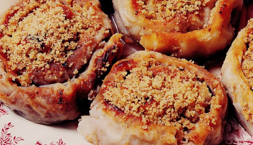 Tereyağını tavada eritin. Başka bir kabın içinde ceviz, tahin ve tarçını karıştırın. Bir adet yufkayı açıp, içine erittiğiniz tereyağından bir miktar sürün. Daha sonra harcını ekleyin. Yufkayı rulo yapın. Daha sonra bir ucundan başlamak üzere gül şeklinde kıvırın.