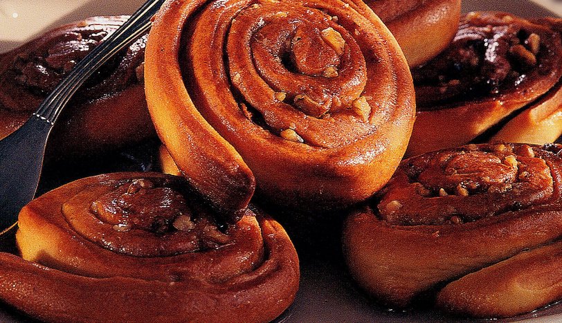 Hamurları düz bir zeminde merdaneyle açın. Her iki hamurun üzerine ayçiçek yağı, ceviz ve tarçın paylaştırın. Hamurları rulo halinde sararak 1 cm genişliğinde dilimleyin. Dilimleri avucunuzun içinde üzerine hafifçe bastırarak düzleştirin.