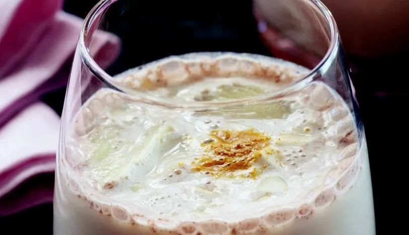Badem, süt, kabak çekirdeği, kakule, gülsuyu, safran ve toz şekeri blenderden geçirin. Şerbeti ılıtıp, kapaklı cam bir kaba alın. Üzerini streç filmle kaplayıp, bir gece buzdolabında dinlendirin. Süzgeçten geçirip, arzuya göre buz parçaları ile servis yapın.