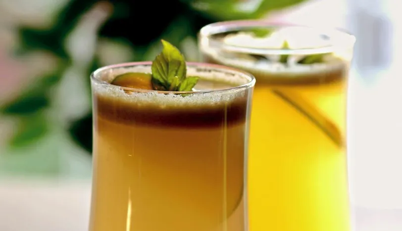 Elmaları katı meyve sıkacağından geçirip suyunu çıkarın. İçine limon suyu ilave edip karıştırın. Balı su ile karıştırıp elmalı karışıma ekleyin ve tekrar karıştırın. Bardaklara pay edin. Her bir bardağın içine 1'er elma ve limon dilimi atın. Üzerine taze nane yaprağı koyun. Buzdolabında yarım saat bekletip, için.