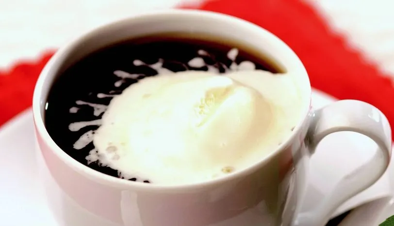 Kahveyi 1 su bardağı sıcak suya ekleyip karıştırın. Daha sonra muskatı ilave edip, servis yapacağınız bardağa alın. Hızlı hareketlerle, dondurmayı kalan 1 su bardağı sıcak suya batırıp çıkardıktan sonra kahvenin üzerine yerleştirin. Sıcak olarak servis yapın.