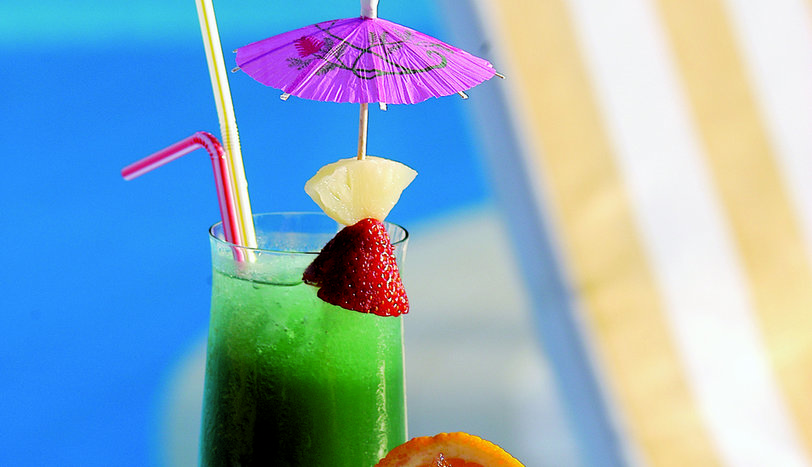 Tüm malzemeyi blendere alın.6 adet buz ekleyip blenderden geçirin. Kırılmış buzlarla birlikte bardağa alın. Soğuk olarak servis yapın.