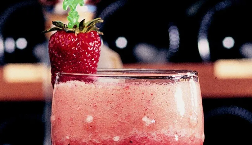 Ananas suyu, çilek şurubu ve sütü derin bir kaba alın. Meyveleri ekleyin. Buzlarla birlikte mikserden geçirin. Kokteyl bardağına koyup, servis yapın.