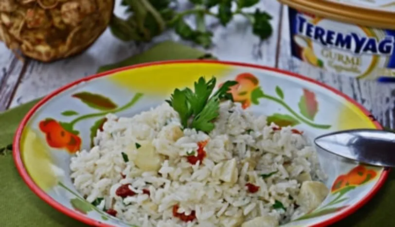 Erittiğiniz Teremyağ Gurme Kaymaklı içinde yüksek ateşte kerevizi kavurun. Pirinci ve kuru domatesleri ekleyip pirinçler şeffaflaşıncaya kadar kavurmaya devam edin. Son olarak ölçülü suyu ve tuzu ekledikten sonra kısık ateşte pişmeye bırakın. Pilav suyunu tamamen çektikten sonra altını kapatıp içine maydanozu ilave edin ve 10 dk demlenmeye bırakın. Daha sonra sıcak olarak servis yapın.