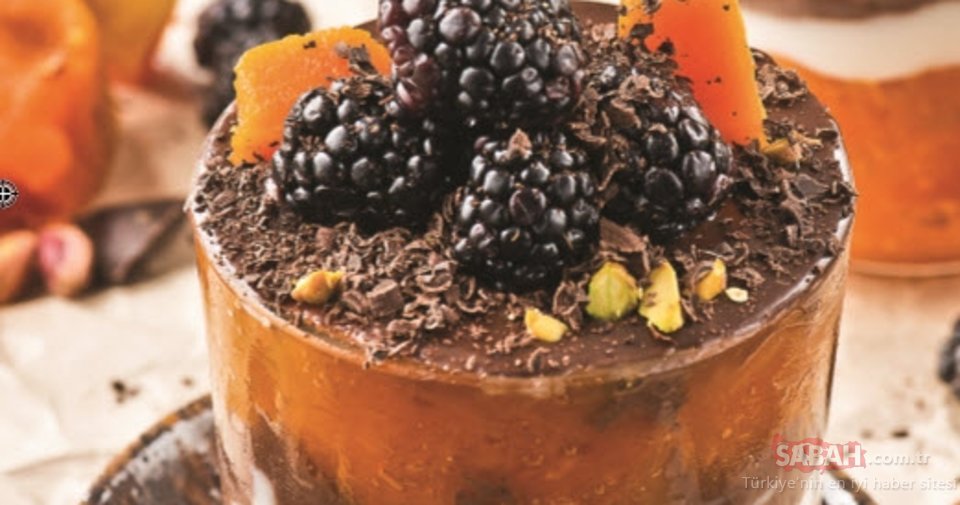 Çikolata sos için, kremayı kısık ateşte kaynatmadan ısıtın. Üzerine küçük parçalar halinde kırdığınız çikolatayı ekleyin ve karıştırın. İyice eriyip pürüzsüz bir kıvam alana dek karıştırın ve ılınmaya bırakın. Kullanacağınız kapların altına balkabağı püresi, üzerine muhallebi, tekrar balkabağı püresi ve en son da hazırladığınız çikolata sosunu dökün.