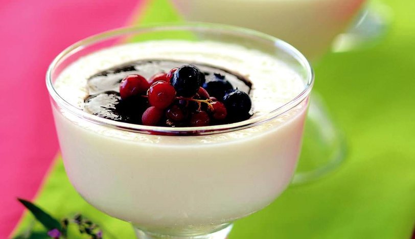 Hazırladığınız muhallebiyi kuplara paylaştırın. Çikolata sos için bir tencerede yumurta sarısı, toz şeker, kakao ve sütü karıştırıp, pişirin. Muhallebinin üzerine gezdirin ve soğuması için buzdolabında 2 saat bekletin. Soğuduktan sonra frenk üzümüyle süsleyip servis yapın.