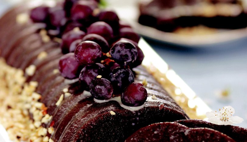 Üzeri için, beyaz çikolatayı benmari usulü eritin. Krema ve vanilyayı da içine ekleyin. Bu karışımı tatlınızın üzerine gezdirip üzümle süsleyerek servis yapın.