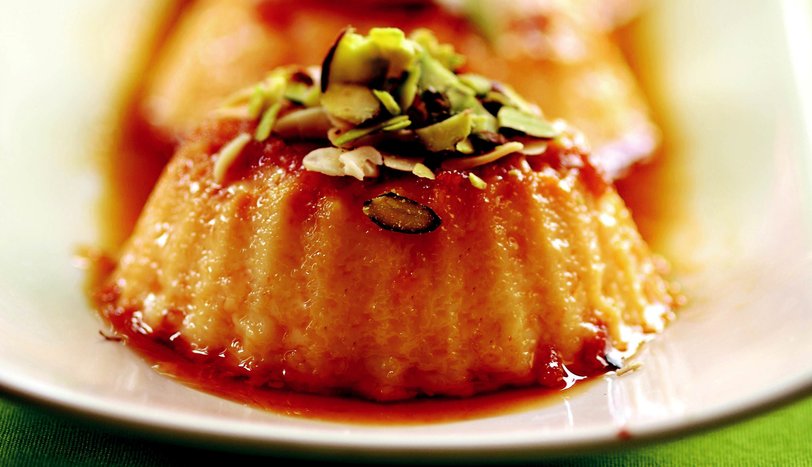 Yumurtalı karışımı da bu kaplara paylaştırın ve fırın tepsisine dizin. Tepsiye 1 parmak sıcak su koyun ve önceden ısıtılmış 170 derece fırında tatlıların üzeri kızarıp, koyulaşıncaya kadar pişirin. Ilındıktan sonra servis tabaklarına ters çevirip çıkarın (kalıptan kolay çıkması için krem karamel kaplarını iki parmak kaynar su doldurduğunuz kabın içinde 2-3 dakika bekletip, salladıktan sonra tabağa ters çevirin). Üzerini file bademle süsledikten sonra servis yapın.