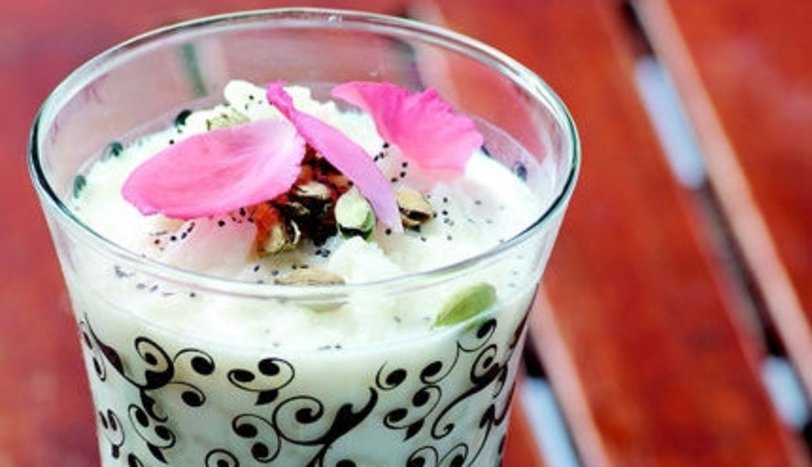Pirinç, süt, dövülmüş damla sakızı, kakule ve zencefili bir tencereye alıp, pirinç yumuşayana dek pişirin. Toz şeker, rendelenmiş portakal kabuğu ve gül suyu ilave edip karıştırın. Servis kaselerine veya kuplara tatlıyı pay edin. Dilediğiniz şekilde süsleyip servis yapın.