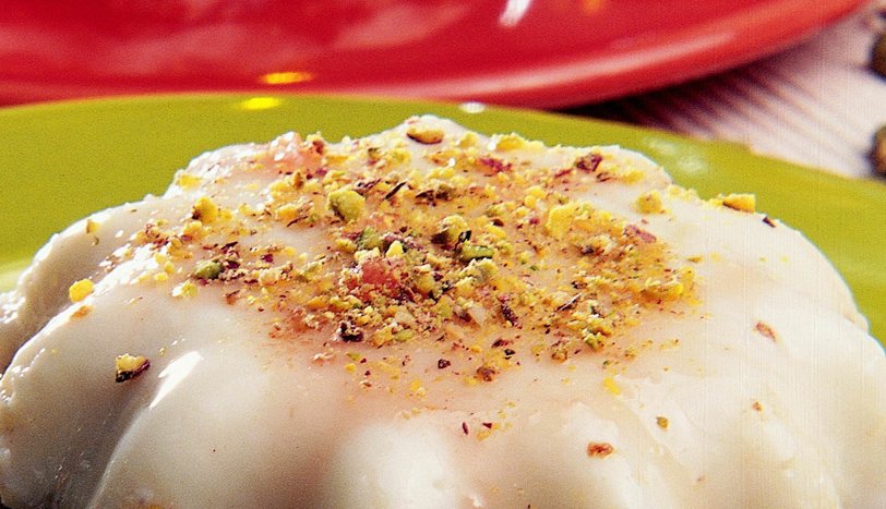 Kalan muhallebiyi de üzerlerine pay edin. Çilek sosu için reçel, su ve mısır nişastasını orta hararetli ateşte 10 dakika pişirin. Ocaktan alıp, iyice ezin. Süzgeçten geçirip, ılınmaya bırakın. Servis tabaklarına gül suyu döküp, çilek sosu gezdirin. Kaseleri servis tabaklarına ters çevirip, soğuk olarak servis yapın.