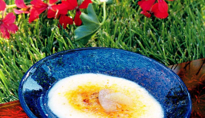 Fırının ızgara bölümünü önceden ısıtın. Dolaptan çıkardığınız kaselerin üzerine birer kaşık esmer şeker serpin. Kaseleri fırında şekerler karamel haline gelene kadar bekletin. İsteğe bağlı olarak bisküvi ile servis yapın.