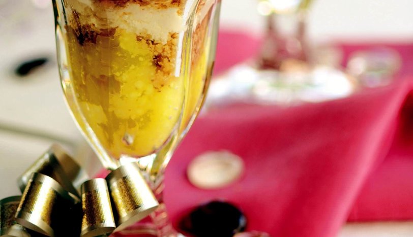 Daha sonra sırasıyla kaymak, cevizli karışım ve puding dökün. Ceviz, kıyılmış antep fıstığı ve nane yaprakları ile süsleyerek servis yapın.