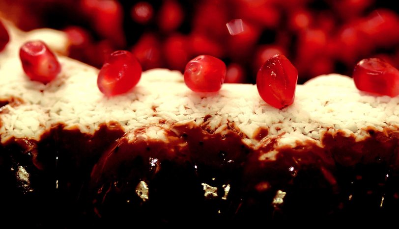 Bisküvileri de diklemesine kalıba yerleştirin. Bir gün buzdolabında beklettikten sonra servis tabağına ters çevirip çıkarın. Nar taneleri ile süsleyin. - 2