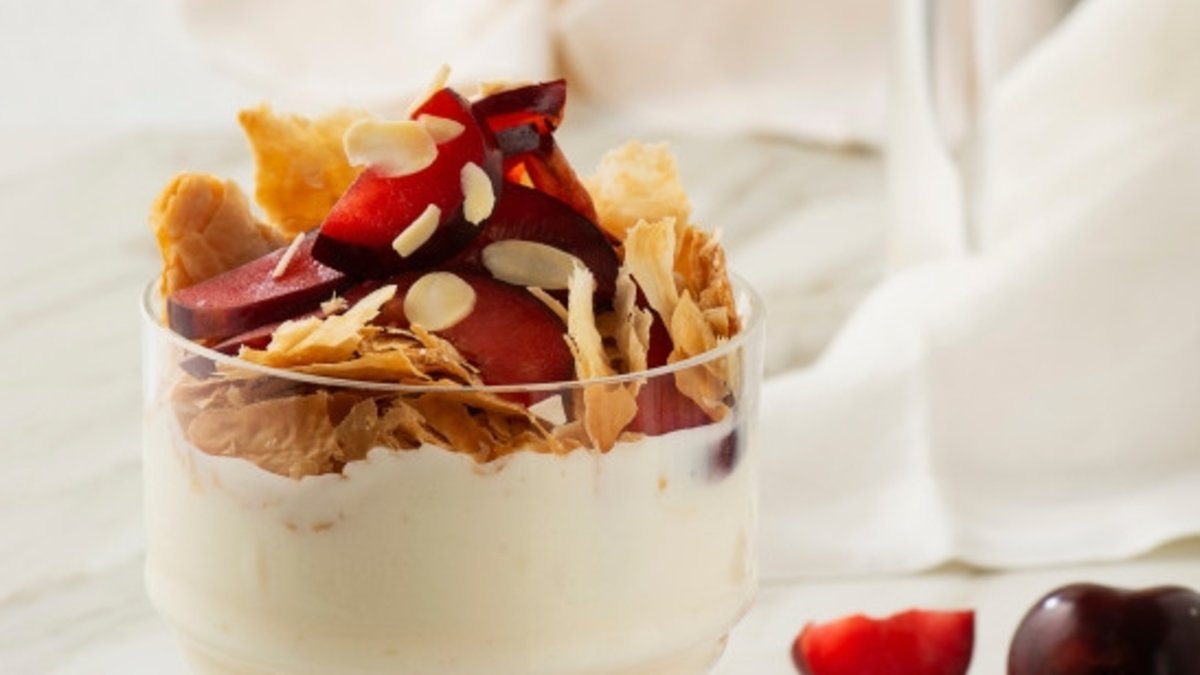 Tatlı tariflerine çok yakışan mürdüm eriğini muhallebi ile birleştirdik ve çok hafif bir tarif elde ettik. Muhallebinin yumuşak ve sütlü kıvamı ile mürdüm eriğinin tatlı ekşi tadı birleşince ortaya çok lezzetli bir tarif çıktı. Denemek isteyenler için milföylü mürdüm eriği tarifi.