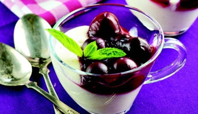 Ocaktan almaya yakın vanilyayı ilave edin ve 1-2 dakika daha karıştırdıktan sonra ocaktan alın. Kaselere paylaştırıp, soğumaya bırakın. Vişne sosu için dondurulmuş vişne, mısır nişastası ve suyu bir tencerede kaynatın. Soğuyan pudingin üzerine paylaştırın. Soğuduktan sonra servis yapın.