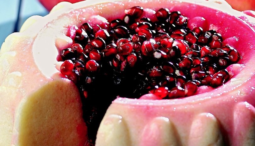 Nar tanelerini üzerine yayın. Jöleyi önce sıcak suyla eritin. Daha sonra soğuk suyu ekleyin ve karıştırın. Tatlının üzerine dökün. 3 saat buzdolabında beklettikten sonra servis yapın. - 2