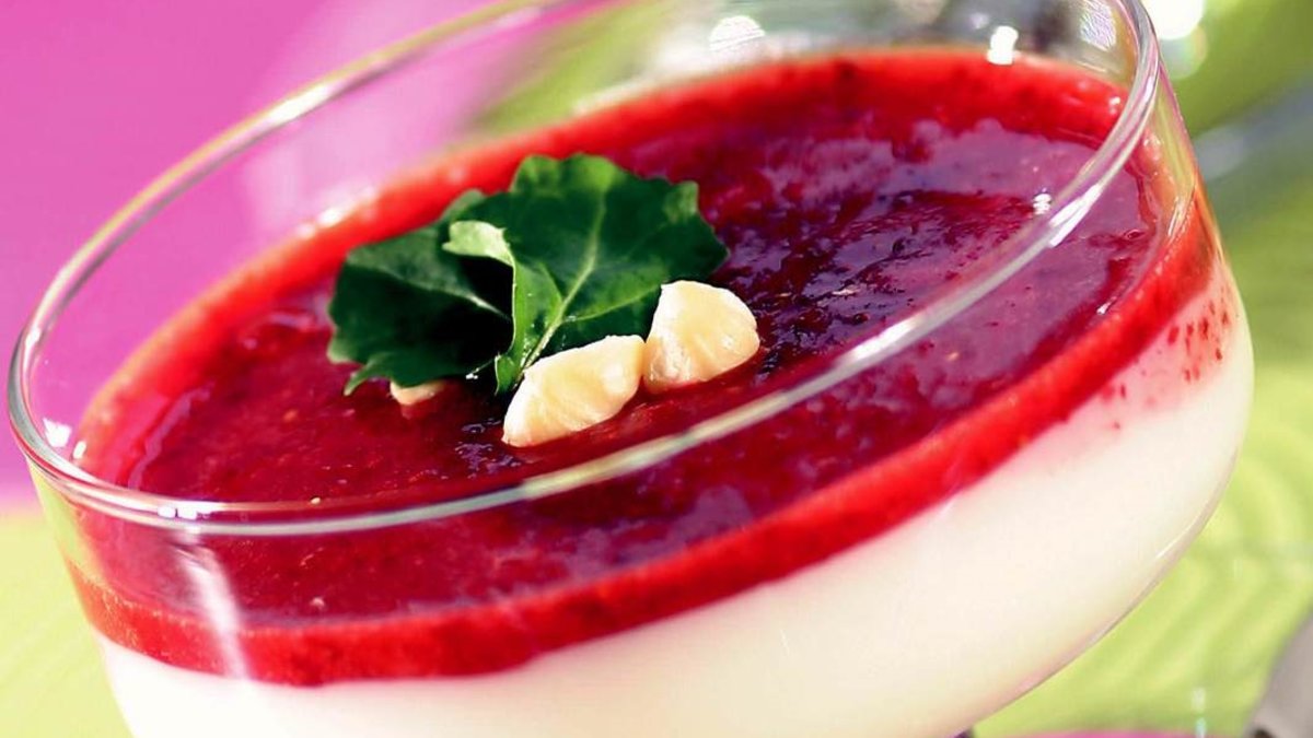 Vanilyayı da ekledikten sonra bir - iki taşım kaynatarak ocağın altını kapatın. Kuplara pay edin. Sosu hazırlamak için, çilek ve pudra şekerini blenderden geçirin. Muhallebinin üzerine gezdirerek servis yapın.