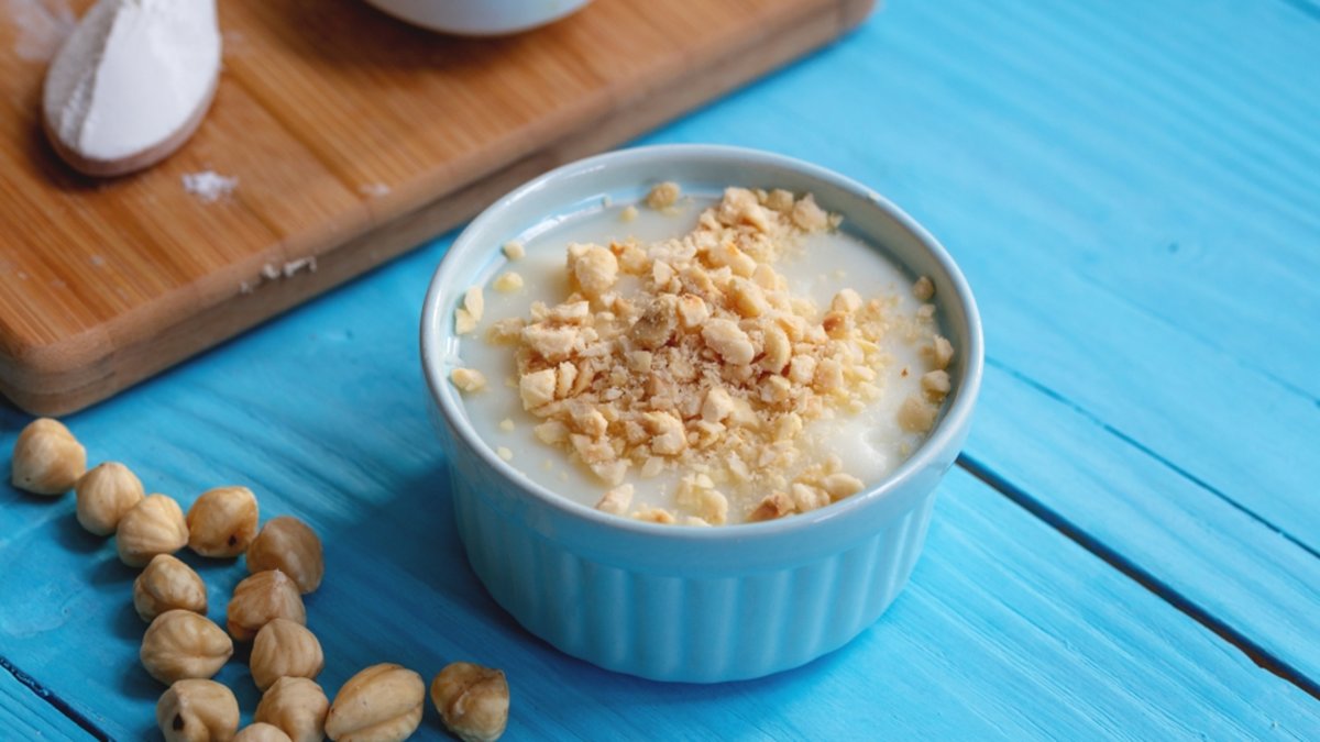 Ayrı bir yerde yarım çay bardağı su, pirinç unu ve vanilyayı çırpın. Ardından tencereye ekleyip karıştırın ve 2 dakika pişirin. Ocaktan alıp 4 adet porsiyonluk kaseye pay edin. Fındıkla süsleyip servis yapın.